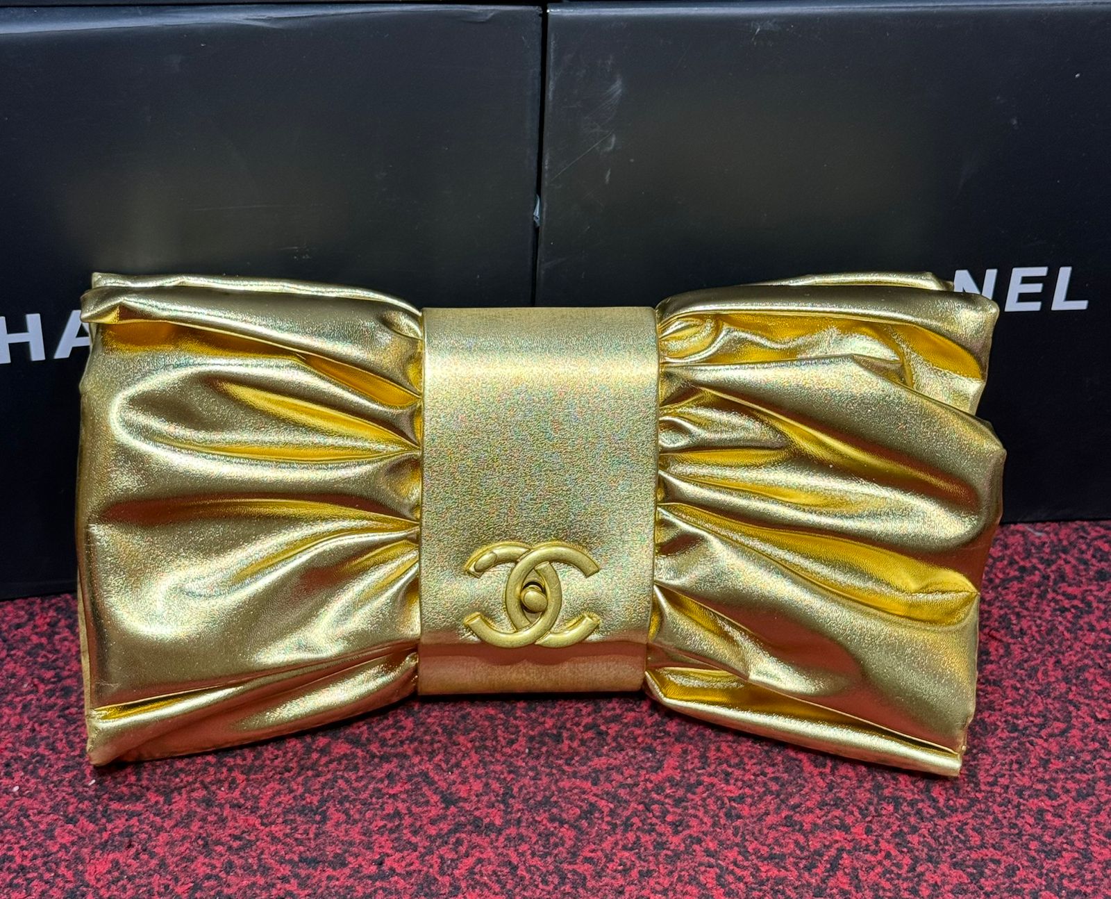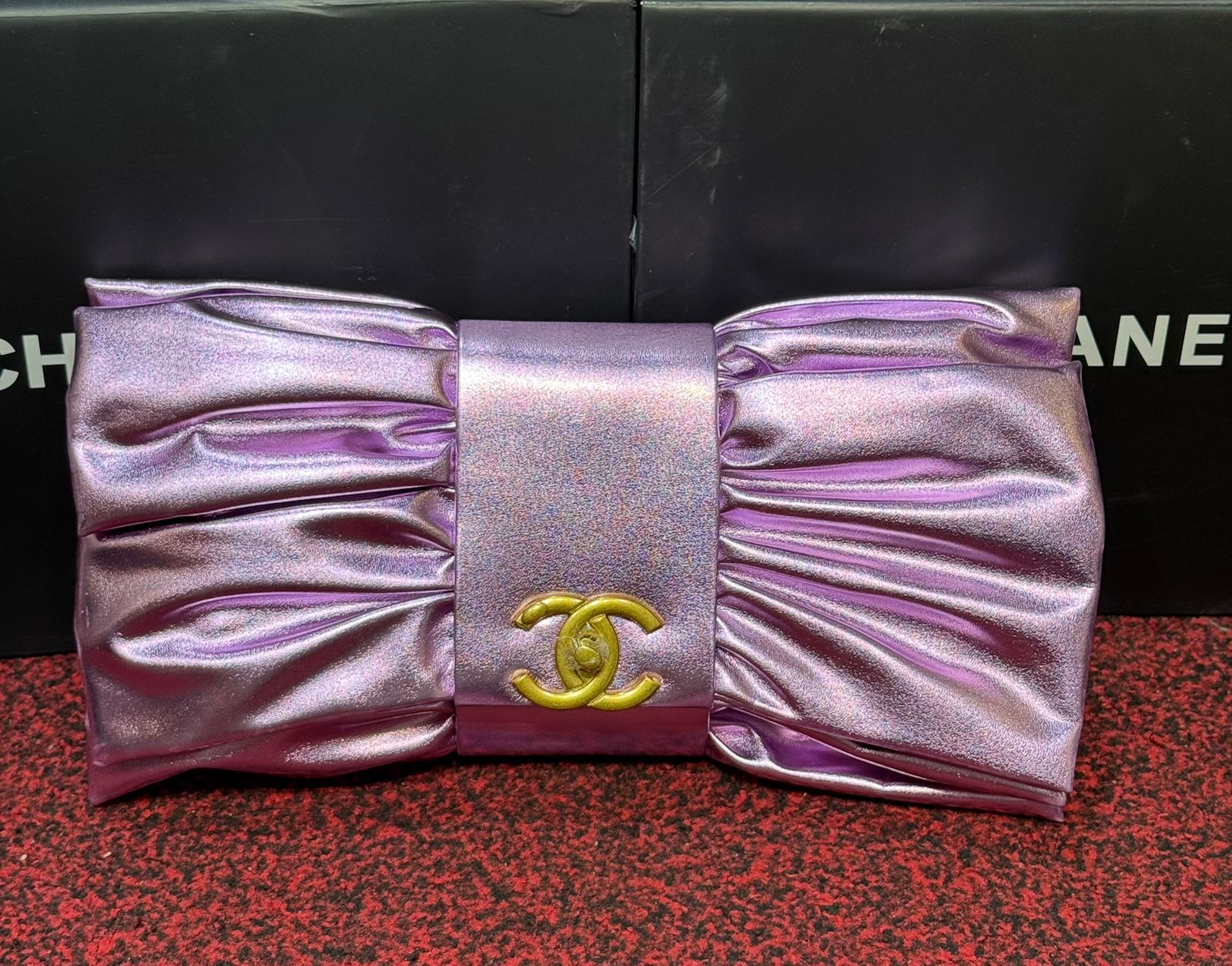Shine bright with this Chanel Peplum bag, crafted from luxurious genuine leather with a charming metallic finish. Its elegant design combines practicality with its ideal size, making it an ideal choice for formal occasions and everyday use alike. This bag provides ample space to carry your essentials in sophisticated style.